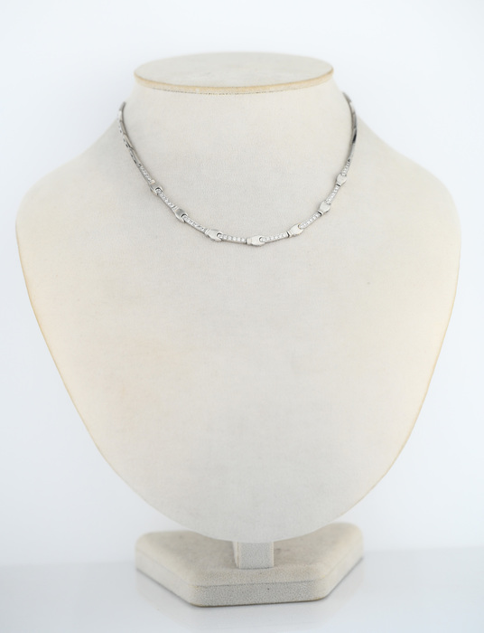 Náhrdelník, z bílého zlata, zdobený zirkony.
