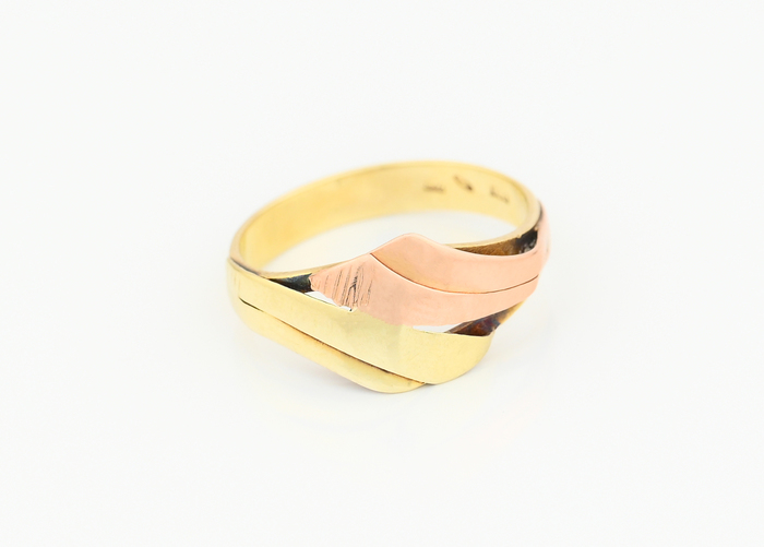Prsten, kombinace červeného a žlutého zlata.