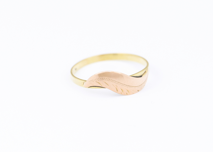 Úvod > Zboží > Zlaté šperky > Prsten, se zdobeným plátkem z červeného zlata.