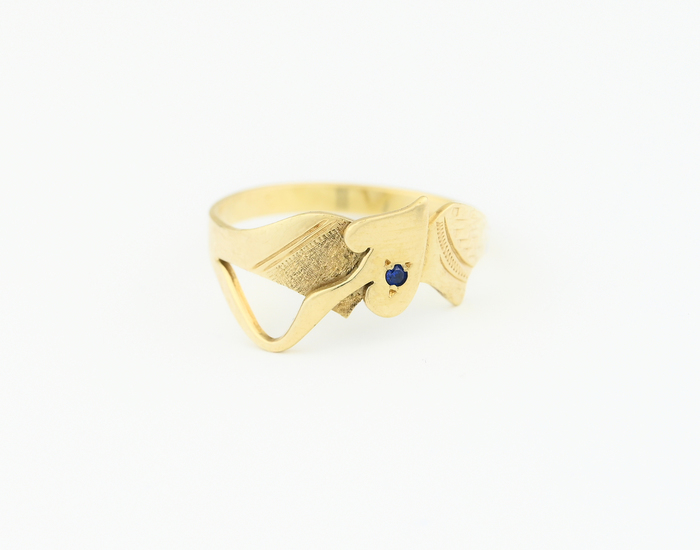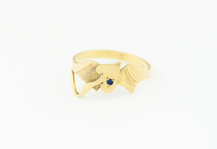 Úvod > Zboží > Zlaté šperky > Prsten, srdce zdobené modrým kamenem.