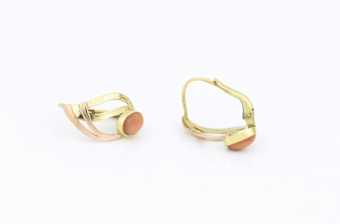 Úvod > Zboží > Zlaté šperky > Zlaté náušnice, s červeným zlatem, zdobené korálem.