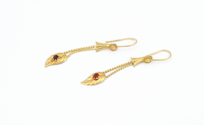 Úvod > Zboží > Zlaté šperky > Zlaté náušnice, visací, zdobené rubíny.