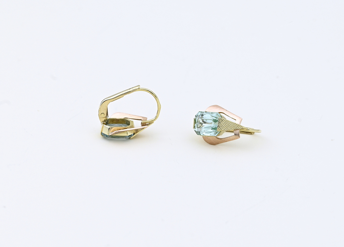Zlaté náušnice, zdobené akvamarínem.