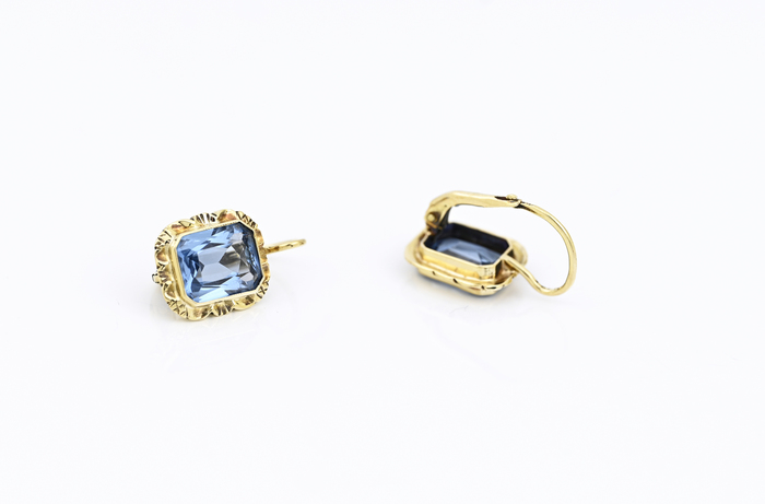Zlaté náušnice, zdobené akvamaríny.