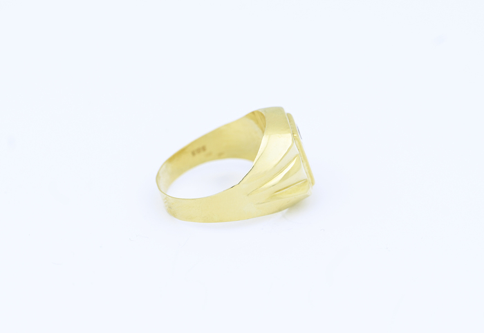 Zlatý pánský prsten, dutý, zdobený zirkonem.