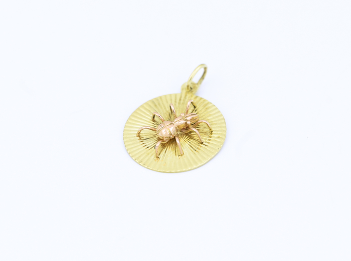 Zlatý přívěšek, pavouček na plošce.