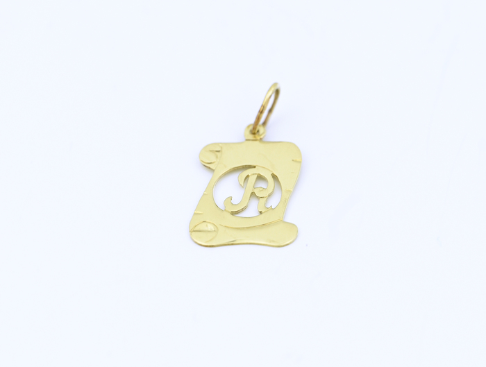 Úvod > Zboží > Zlaté šperky > Zlatý přívěšek, písmeno R na pergamenu.