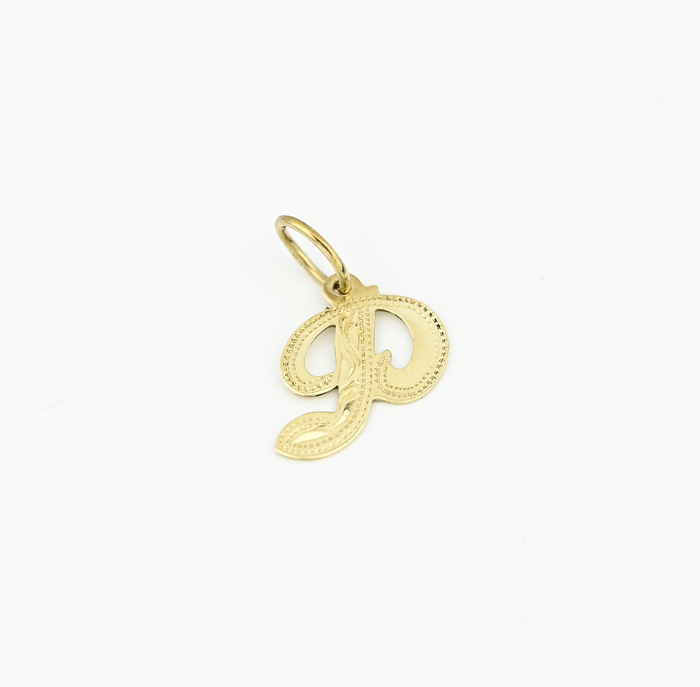 Zlatý přívěšek, zdobené písmeno P.