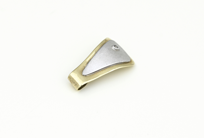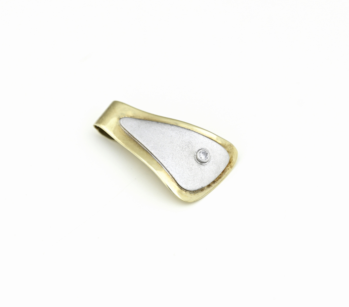 Zlatý přívěšek, zdobený bílým zlatem a zirkonem.