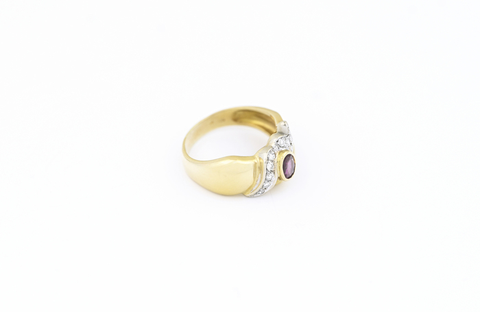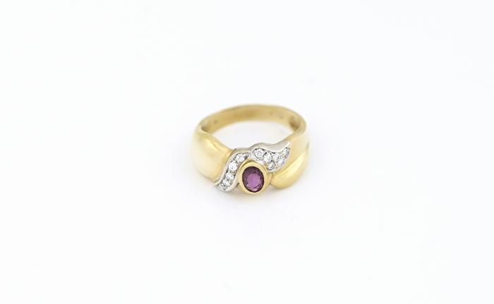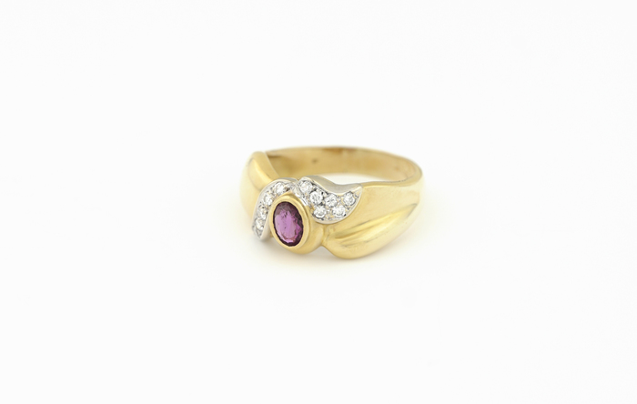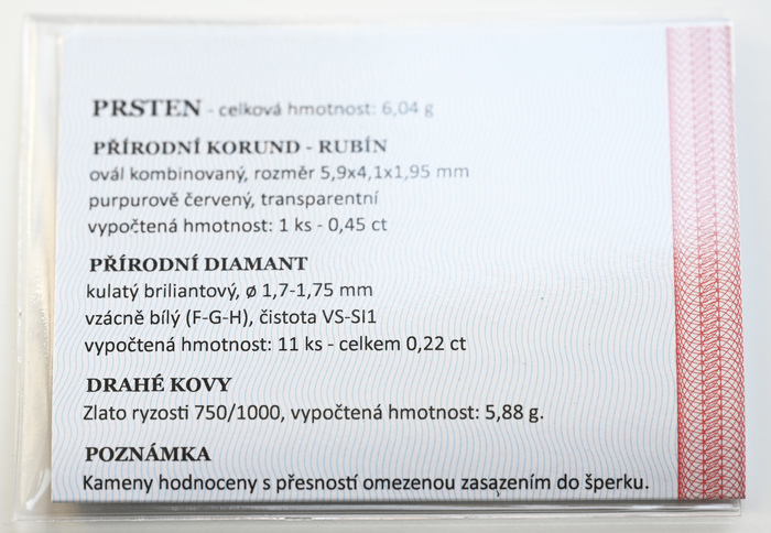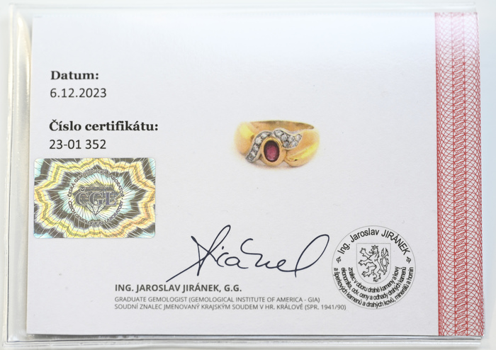Zlatý prsten 18kt s diamanty 0,22ct a rubínem + certifikát.