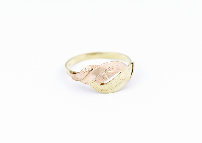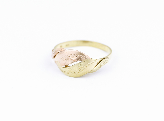 Zlatý prsten, kombinované zlato se zdobením.