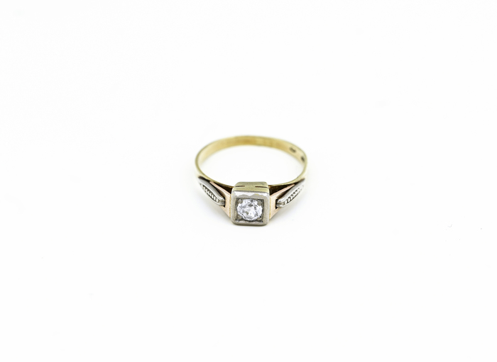Zlatý prsten, kombinované zlato, se zirkonem.
