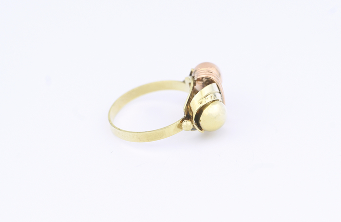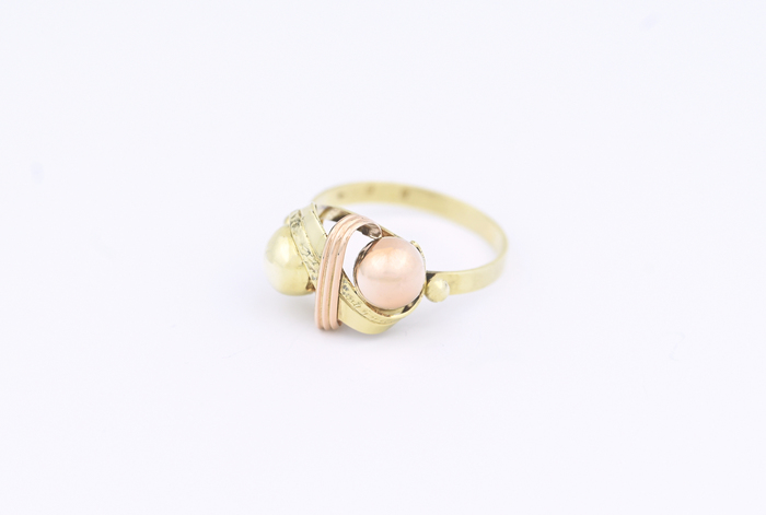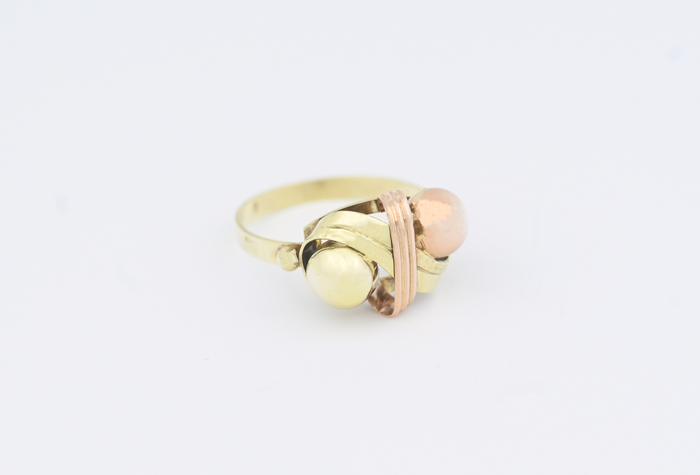Zlatý prsten, kombinované zlato, zdobený kuličkami.