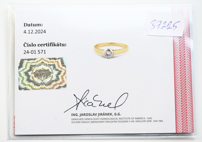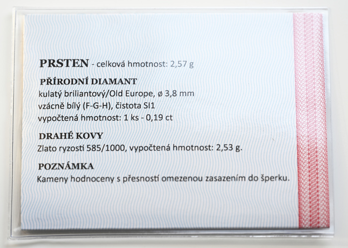 Zlatý prsten s diamantem 0,19ct, se zdobením a korunkou z bílého zlata+certifikát.