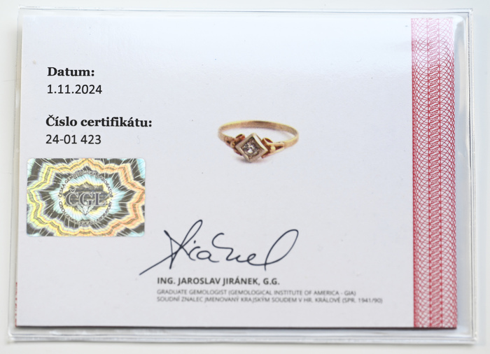 Zlatý prsten s diamantem 0,27ct, v kombinaci s červeným a bílým zlatem + certifikát.