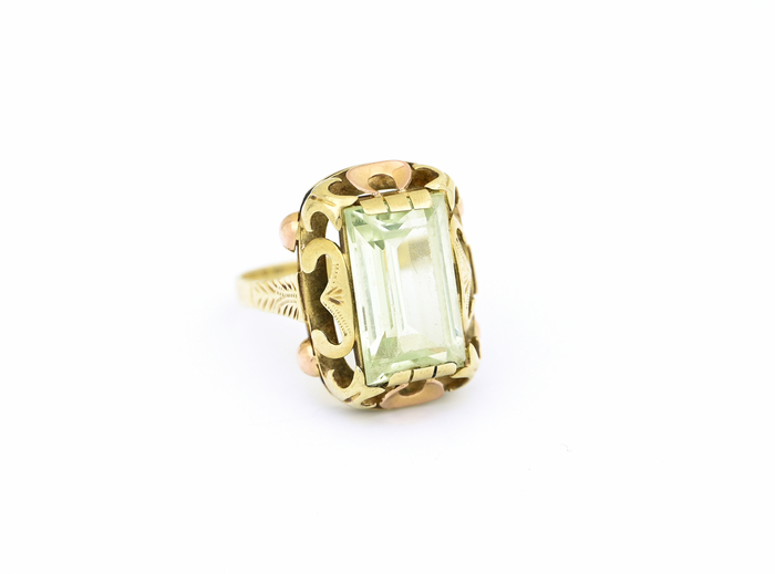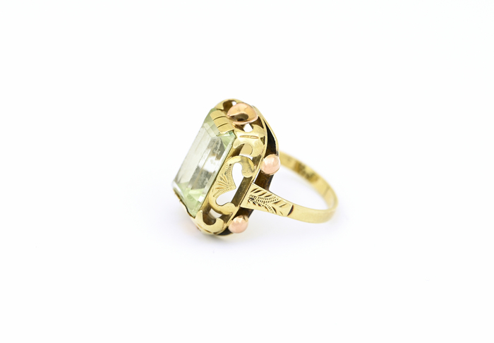Zlatý prsten se zeleným kamenem, kombinované zlato.