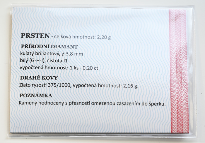 Zlatý prsten z bílého zlata 9kt s korunkou zdobenou diamantem 0,20ct+certikát.