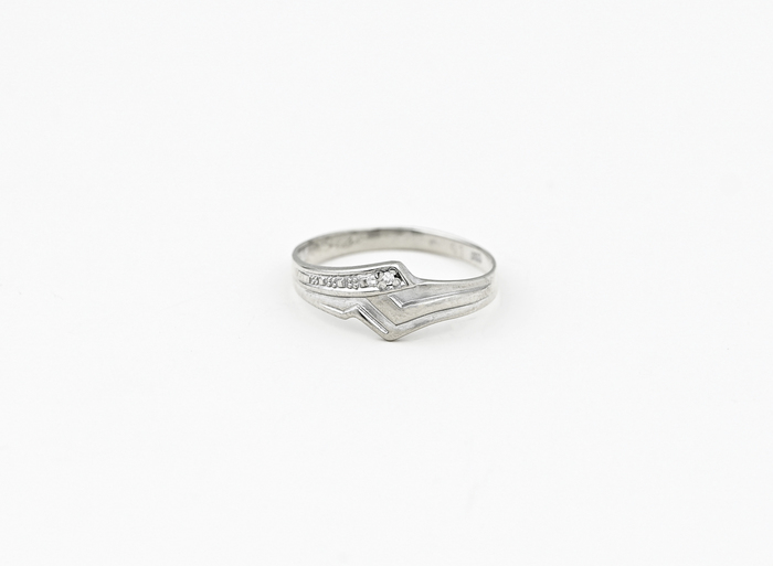 Zlatý prsten, z bílého zlata se zirkony.