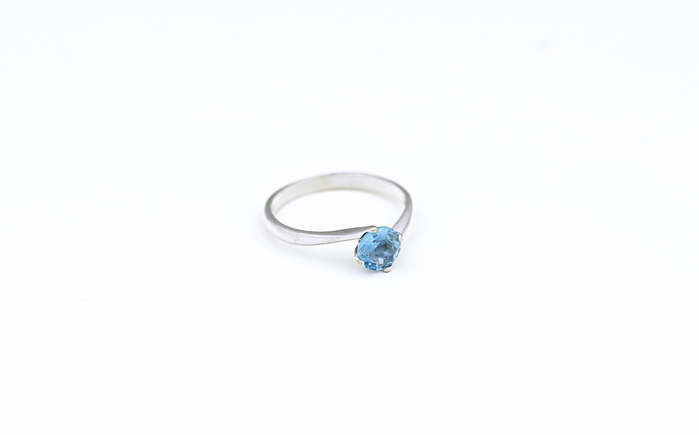 Zlatý prsten, z bílého zlata, zdobený modrým kamenem.