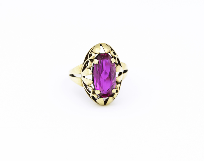 Zlatý prsten, zdobený ametystem.