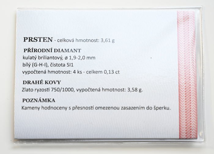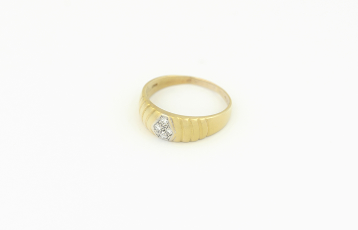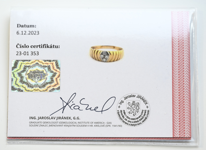 Zlatý prsten, zdobený čtyřmi diamanty 0,13ct.