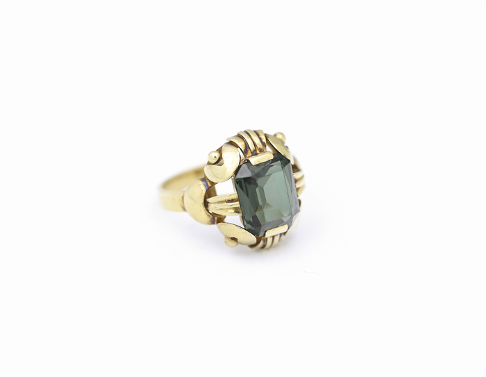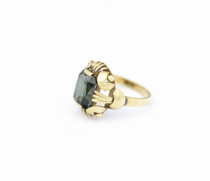 Úvod > Zboží > Zlaté šperky > Zlatý prsten, zdobený zeleným kamenem.