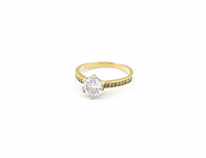 Úvod > Zboží > Zlaté šperky > Zlatý prsten, zdobený zirkony, s korunkou.