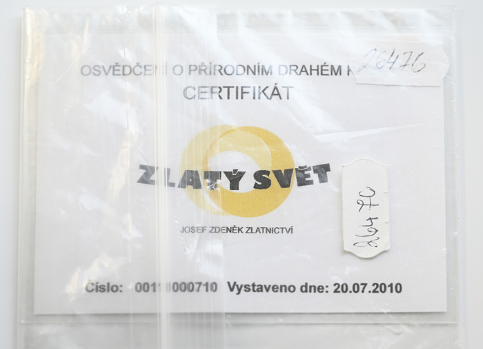 Obroučka je tvarovaná jako překřížené pásky, které se setkávají v místě zasazeného diamantu. Kámen je uchycený přímo v kovu bez výraznějšího vyvýšení.