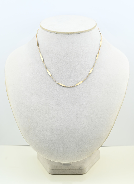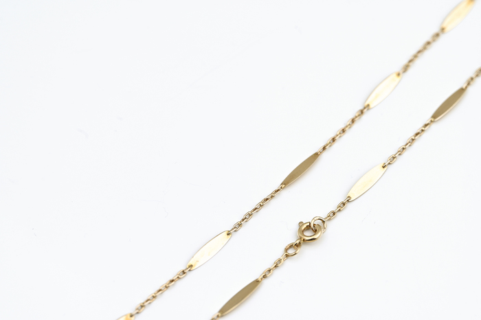Zlatý řetízek, z červeného zlata s podlouhlými ploškami.